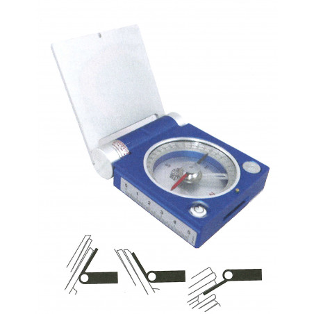 La GEKOM è un'ottima e robusta bussola da geologia in accordo con metodo di misura del Prof. Dr. Clar, consente con un'unica operazione di determinare l'angolo di falda verticale (strato) e la direzione orizzontale. La lettura dei cerchi avviene così in contemporanea facilitando le operazioni di rilievo. Il corpo è realizzato in lega leggera antimagnetica, solida e resistente. La superficie è anodizzata nel colore blu. L'ago della bussola ha una lunghezza di 44 mm ed è bloccato in modo automatico quando non è utilizzato. La doppia colorazione rosso/nero consente un veloce riconoscimento del nord/sud. Il coperchio di chiusura è dotato di frizione a vite regolabile dall'operatore.