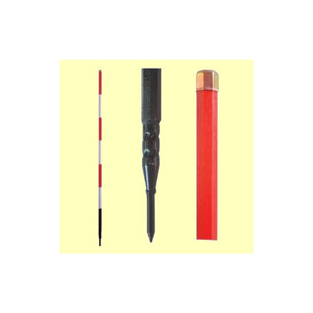 Confezione da 5 paline in legno di altezza 160 cm con ghiera in testa e puntale a chiodo in ferro, verniciate in bianco e rosso.