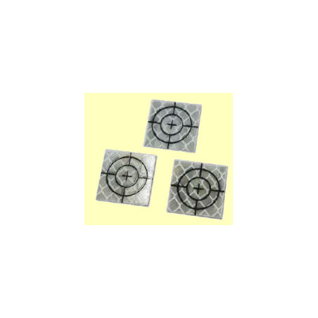 Target riflettenti 20x20 mm con croce di mira per Stazioni Totali, realizzati in materiale adesivo 3M originale con alta rifrangenza. Ideali per monitoraggi, rilievi di facciate, di strutture e cedimenti